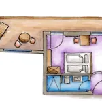 Ten apartament dysponuje łazienką z suszarką do włosów, ręcznikami kąpielowymi i kapciami. Do dyspozycji Gości jest oddzielna toaleta.